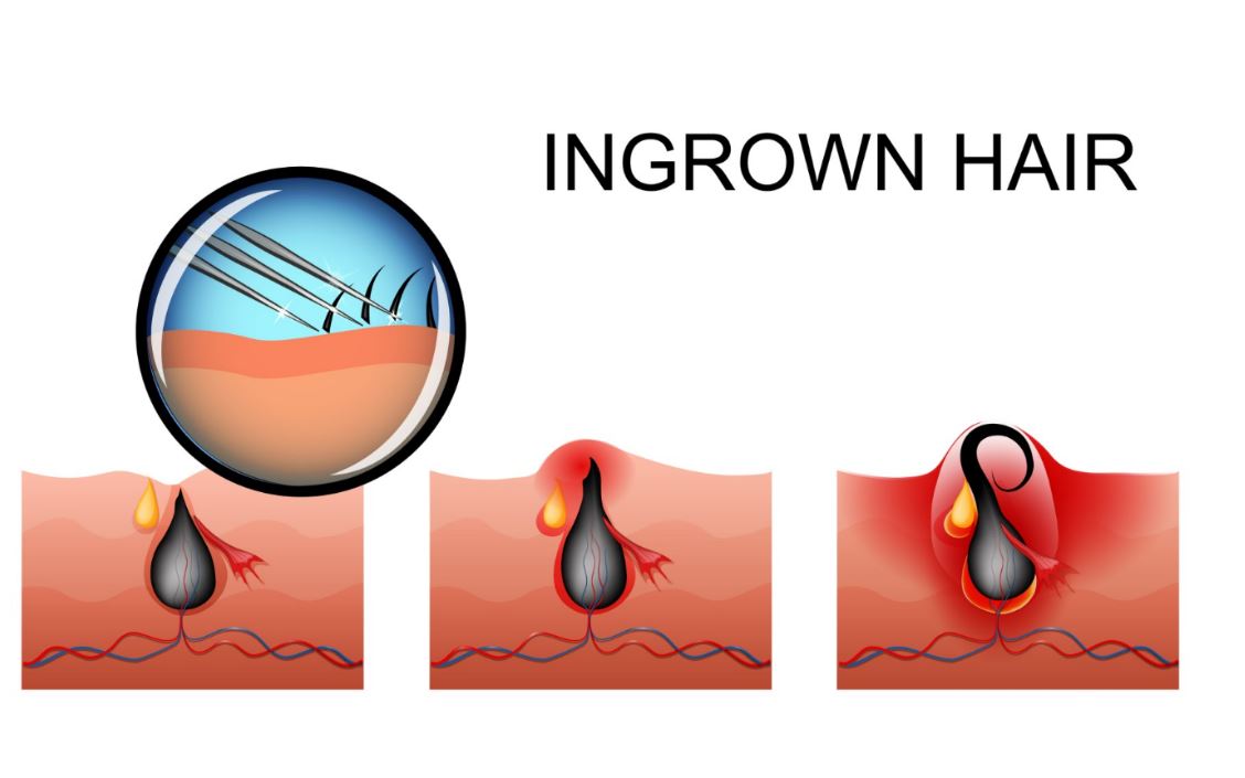 The curling back and irritation can also cause swelling around the hair follicle as its tip remains beneath the skin.